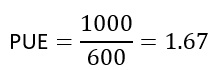 If a data center consumes 1,000 kWh in total and the IT equipment consumes 600 kWh, then: